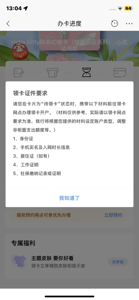 5. 等收到通知再带身份证和其他辅助材料(如有)去指定银行激活即可(大约3-14天左右)